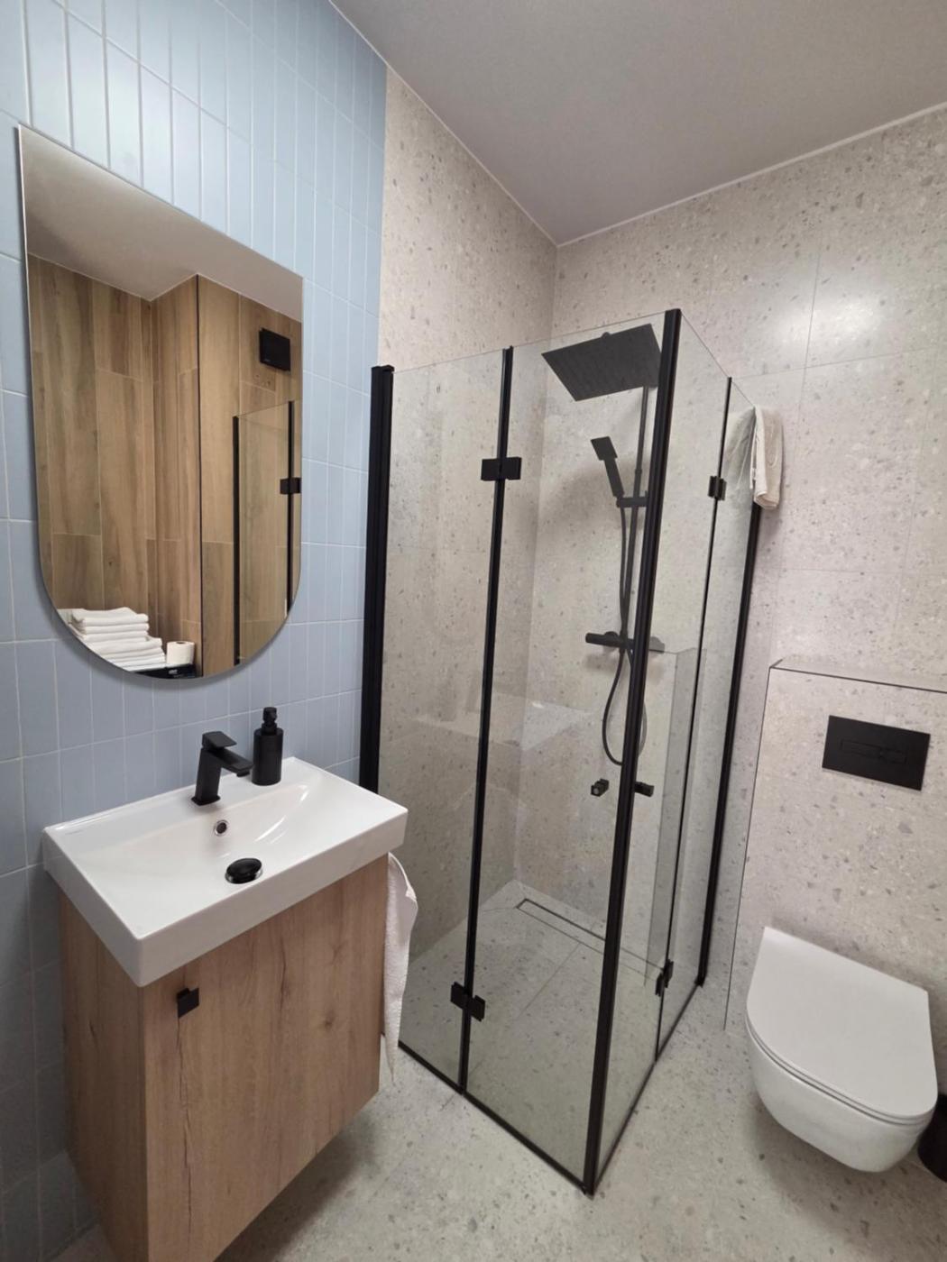 Apartament z 1 sypialnią. Boasting a private entrance, this air-conditioned apartment comes with 1 living room, 1 separate bedroom and 1 bathroom with a walk-in shower and a hairdryer. Meals can be prepared in the kitchen, which features a stovetop, a refrigerator, a dishwasher and kitchenware. This apartment has a washing machine, a seating area, a flat-screen TV with streaming services and a balcony. The unit has 2 beds. Apartament - 4 osobowy. Powierzchnia pokoju ok.: 30 mkw.